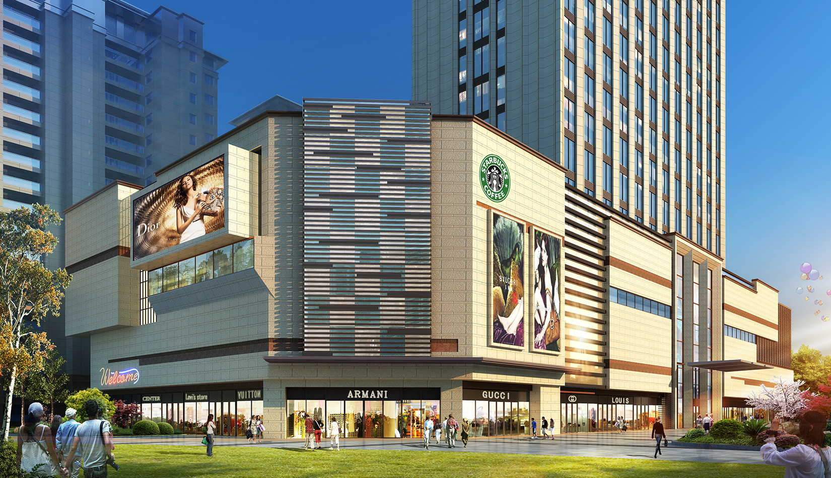 頂部處理上結(jié)合現(xiàn)代化設(shè)計(jì)元素和表現(xiàn)手法,豐富建筑體量,力求簡練現(xiàn)代、色彩時(shí)尚,使之充滿活力和昭示性效果